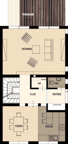 Der Haustyp „Modern Art“ überzeugt durch die nutzerorientierte Planung. Ein attraktives Ausstattungsniveau, hohe Wertbeständigkeit und Verwendung nachhaltiger Materialien schaffen ein besonderes Wohnambiente.